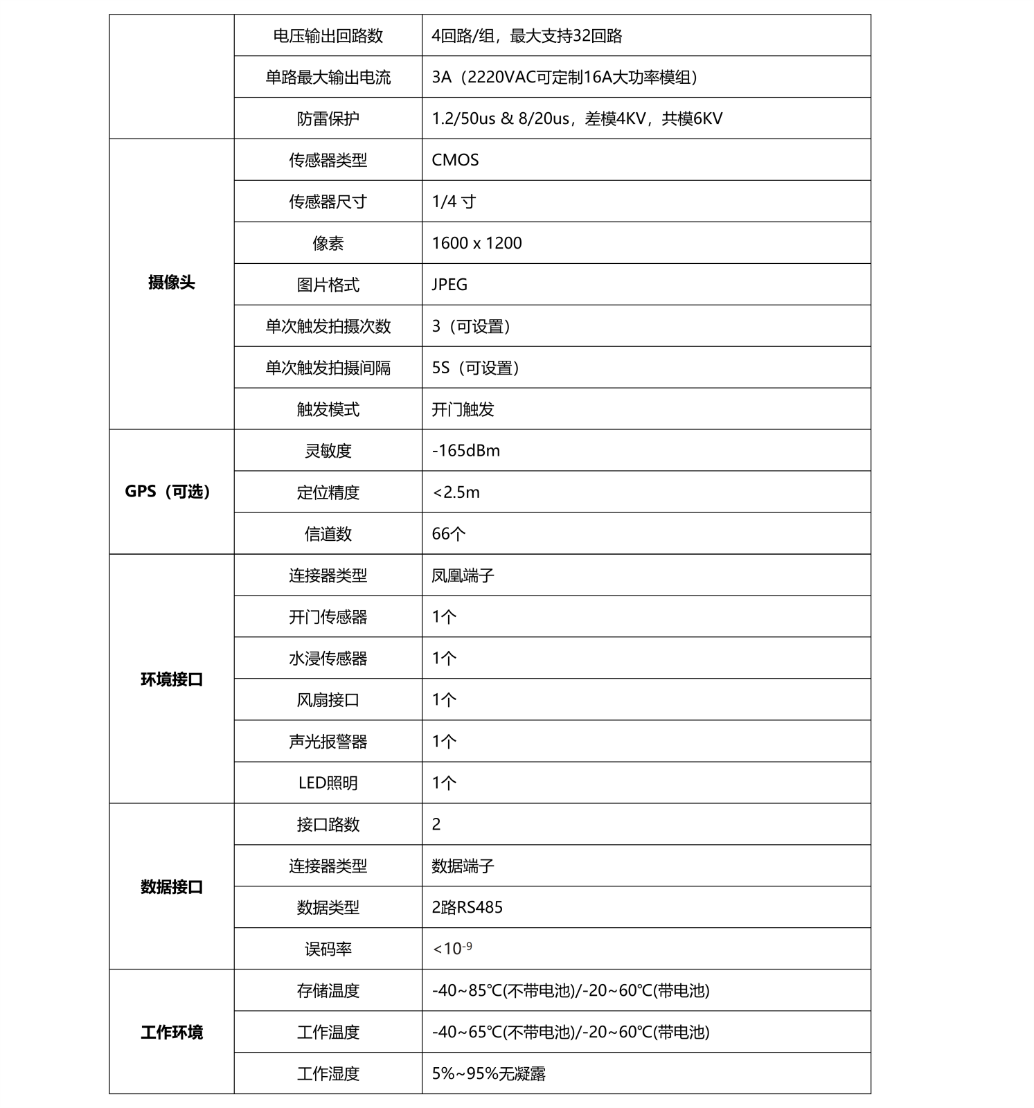 智能箱集成了自動重合閘單元,電源監(jiān)測管理單元,實現(xiàn)對多路電源的可靠供電、遠程輸出電壓開斷控制和監(jiān)測管理,可以實時和智能地分析攝像機、補光燈、閃光燈、風扇等負載異常并報警。智能環(huán)境監(jiān)控管理模塊實現(xiàn)對箱門狀態(tài)、箱內(nèi)浸水檢測、箱內(nèi)溫濕度檢測和風扇控制、箱內(nèi)燈光控制、箱門開啟自動拍照上傳。