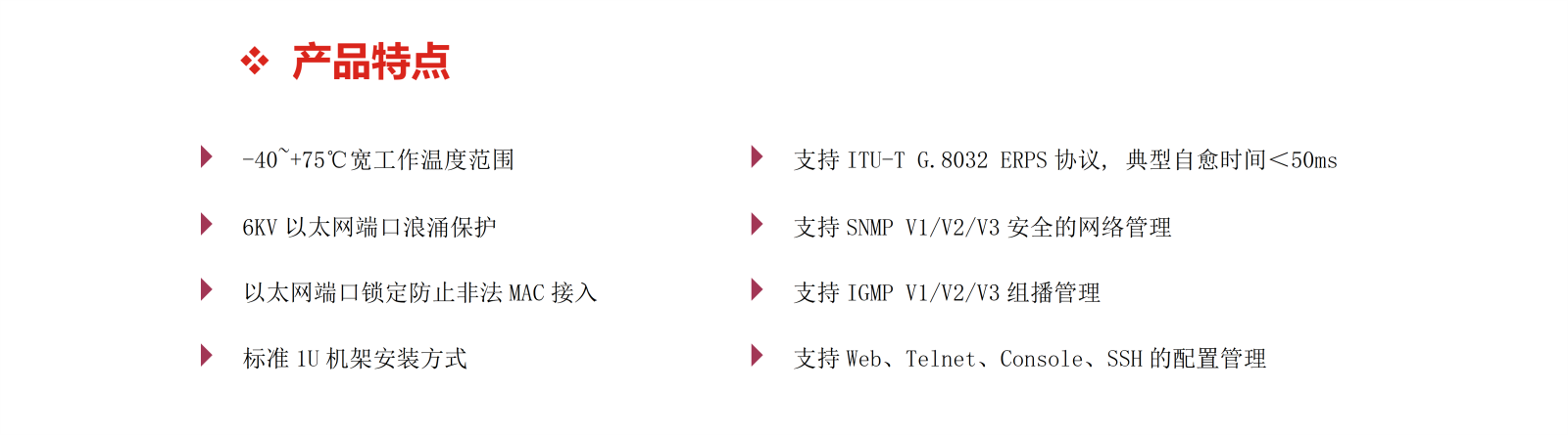 工業(yè)IP40防護等級的金屬機殼、堅固的1U機架結構、高達6KV的以太網端口浪涌保護等設計為交換機在惡劣的工作環(huán)境中穩(wěn)定運行提供了可靠保障。