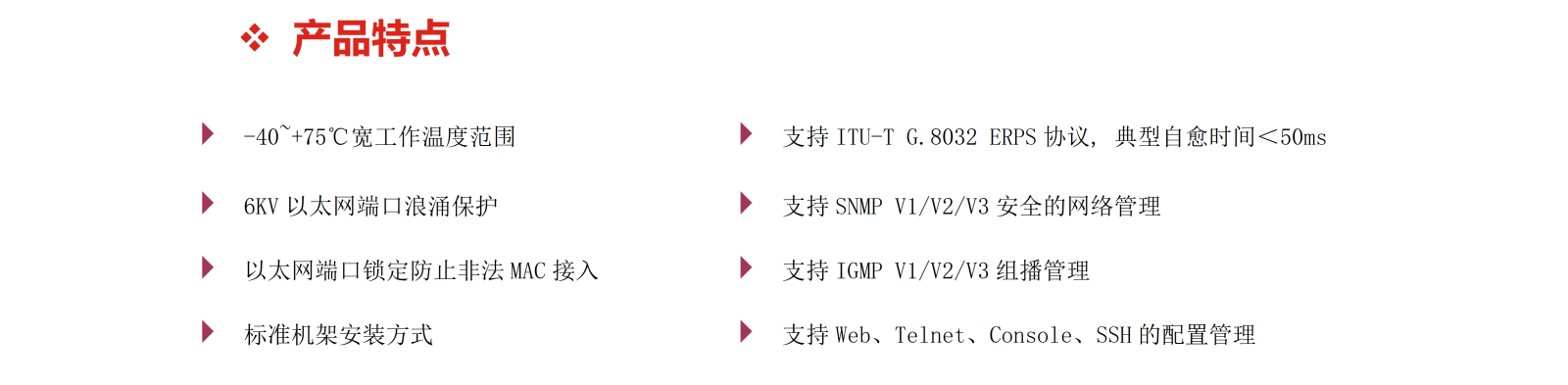工業(yè)IP40防護(hù)等級(jí)的金屬機(jī)殼、堅(jiān)固的1U機(jī)架結(jié)構(gòu)、高達(dá)6KV的以太網(wǎng)端口浪涌保護(hù)等設(shè)計(jì)為交換機(jī)在惡劣的工作環(huán)境中穩(wěn)定運(yùn)行提供了可靠保障。