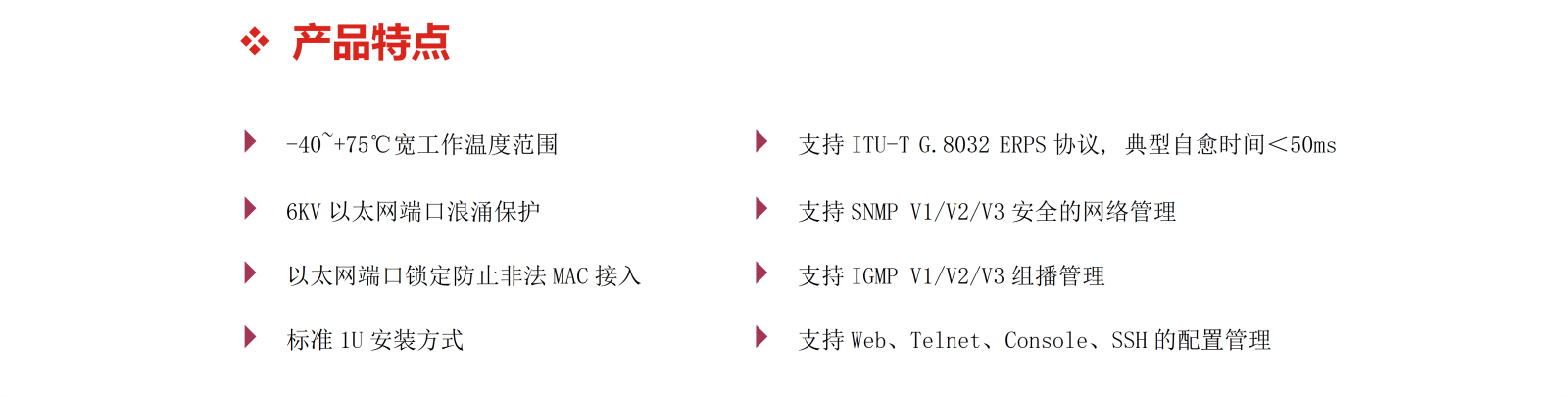 工業(yè)IP40防護(hù)等級的金屬機(jī)殼、堅(jiān)固的1U機(jī)架結(jié)構(gòu)、高達(dá)6KV的以太網(wǎng)端口浪涌保護(hù)等設(shè)計(jì)為交換機(jī)在惡劣的工作環(huán)境中穩(wěn)定運(yùn)行提供了可靠保障。