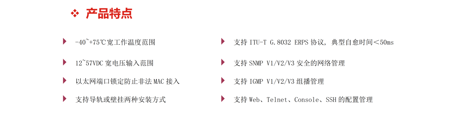 工業(yè)IP40防護(hù)等級(jí)的金屬機(jī)殼、抗強(qiáng)振卡軌結(jié)構(gòu)、MTBF≥300000h、高達(dá)6KV的以太網(wǎng)端口浪涌保護(hù)等設(shè)計(jì)為交換機(jī)在惡劣的工作環(huán)境中穩(wěn)定運(yùn)行提供了可靠保障。