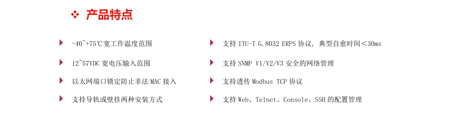 工業(yè)IP40防護(hù)等級(jí)的金屬機(jī)殼、抗強(qiáng)振卡軌結(jié)構(gòu)、MTBF≥300000h、高達(dá)6KV的以太網(wǎng)端口浪涌保護(hù)等設(shè)計(jì)為交換機(jī)在惡劣的工作環(huán)境中穩(wěn)定運(yùn)行提供了可靠保障。